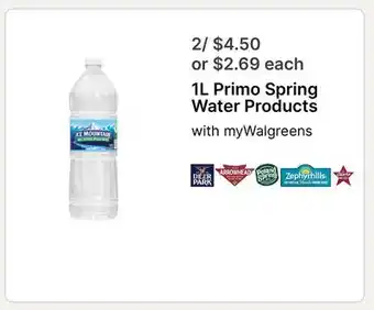 1L Primo Spring Water Products offers and online specials, straight from the current Walgreens ad