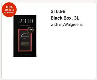 The price of Black Box, 3L with myWalgreens can be found at the top of the page, together with the dates during which the offer is available. You can also check the price in the current Walgreens weekly ad or on the Walgreens website. Promotional offers assure you of buying Walgreens products at the lowest price.