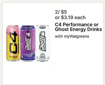The price of C4 Performance or Ghost Energy Drinks can be found at the top of the page, together with the dates during which the offer is available. You can also check the price in the current Walgreens weekly ad or on the Walgreens website. Promotional offers assure you of buying Walgreens products at the lowest price.