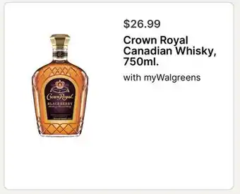 Walgreens offers a wide collection of products, besides the Crown Royal Canadian Whisky, 750ml. Keep an eye on the weekly Walgreens weekly ad to find the best offers and promotions. Besides Crown Royal Canadian Whisky, 750ml, you can also find the following offers: Crown Royal Canadian Whisky, 750ml, Crown Royal Whisky & Crown Royal Regal Apple, Peach or Whisky.