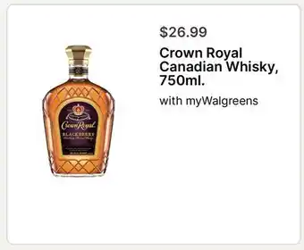 The price of Crown Royal Canadian Whisky can be found at the top of the page, together with the dates during which the offer is available. You can also check the price in the current Walgreens weekly ad or on the Walgreens website. Promotional offers assure you of buying Walgreens products at the lowest price.