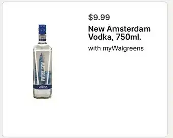 The price of New Amsterdam Vodka can be found at the top of the page, together with the dates during which the offer is available. You can also check the price in the current Walgreens weekly ad or on the Walgreens website. Promotional offers assure you of buying Walgreens products at the lowest price.