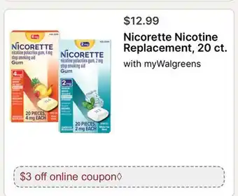 Nicorette Nicotine Replacement, 20 ct Discount at Walgreens
