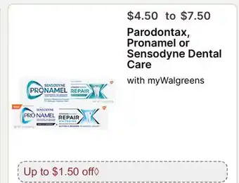 Parodontax, Pronamel or Sensodyne Dental Care deals and online offers from the current Walgreens weekly ad