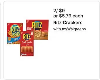 Walgreens offers a wide collection of products, besides the Ritz Crackers. Keep an eye on the weekly Walgreens weekly ad to find the best offers and promotions. Besides Ritz Crackers, you can also find the following offers: Ritz Crackers, RITZ CRACKERS & Ritz Crackers.