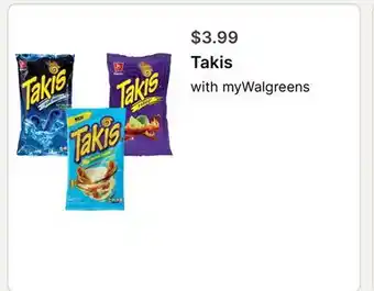 Walgreens offers a wide collection of products, besides the Takis. Keep an eye on the weekly Walgreens weekly ad to find the best offers and promotions. Besides Takis, you can also find the following offers: Takis Tortilla Chips, Takis Chips & Takis Zombie Rolled Tortillas.