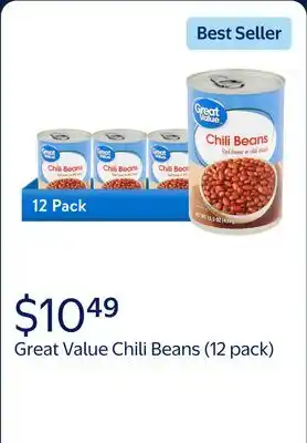 Current (12 pack) Great Value Chili Beans deal at Walmart from 25-02 until 3-03.