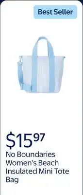 No Boundaries Women's Beach Insulated Mini Tote Bag, Sky Pin Stripe
