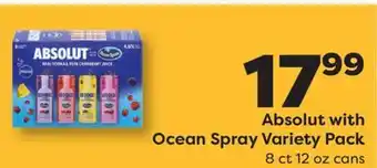 Absolut with Ocean Spray Variety Pack Discount at Weis Markets