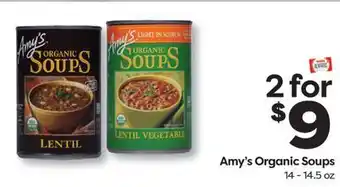 The Amy's Organic Soups is available this week in the weekly ad of Weis Markets, with an attractive discount. On this page, you’ll find all the information about current promotional prices, terms of the promotion, and special discounts. Browse through the weekly ad and check out other offers and promotions related to Amy's Organic Soups to ensure you get the best deal.The deal for Amy's Organic Soups is valid in week 05 and can be found in the current weekly ad. Has the deal expired? No worries, you can always check other interesting offers in the weekly ad. You can also follow the product category to be immediately informed when Amy's Organic Soups is back in the weekly ad of Weis Markets.