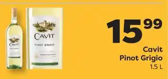 This offer is available in various stores, view all products to get the cheapest Cavit Pinot Grigio. If you'd like to find out whether this product has a bigger discount in another store, check the category 'Grocery'. You may also find these offers interesting: Cavit Pinot Grigio, Cavit Pinot Grigio, Kim Crawford Sauvignon Blanc, Hand on Heart Non-Alcoholic & Bogle 750 ml. Select Varieties or Ecco Doman Pinot Grigio 750 ml.