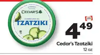 The price of Cedar's Tzatziki can be found at the top of the page, together with the dates during which the offer is available. You can also check the price in the current Weis Markets weekly ad or on the Weis Markets website. Promotional offers assure you of buying Weis Markets products at the lowest price.