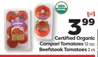 Certified Organic Campari Tomatoes 12 oz Beefsteak Tomatoes 2 ct deals and online offers from the current Weis Markets weekly ad