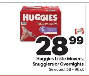 This offer is available in various stores, view all products to get the cheapest Huggies Little Movers, Snugglers or Overnights. If you'd like to find out whether this product has a bigger discount in another store, check the category 'Grocery'. You may also find these offers interesting: Huggies Little Snugglers, Little Movers, or Overnights, Huggies Little Snugglers Baby Diapers Unscented, Size 1 & Huggies Wipes.