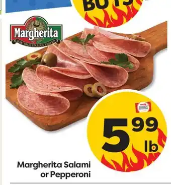 In which store will Margherita Salami or Pepperoni be on sale next week? These are some of the questions we get asked a lot. It’s only normal, nobody likes to pay too much! Our team keeps an eye on all deals and lists them online as soon as possible. So you can customize your (shopping) list with this week's offers and those of next week. Make sure to check next week’s Weis Markets ad, some of the specials are only available next week or online.Frequently asked questions about Margherita Salami or Pepperoni