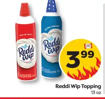 This offer is available in various stores, view all products to get the cheapest Reddi Wip Topping. If you'd like to find out whether this product has a bigger discount in another store, check the category 'Grocery'. You may also find these offers interesting: Reddi Wip Topping, REDDI WIP TOPPING & REDDI WIP TOPPING.