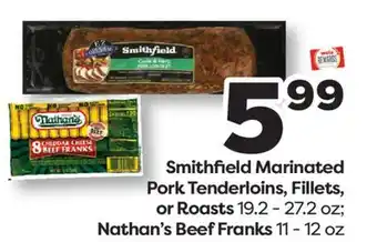 Smithfield Marinated Pork Tenderloins, Fillets, or Roasts 19.2-27.2 oz Nathan's Beef Franks 11-12 oz