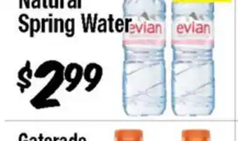 In which store will Evian Natural Spring Water be on sale next week? These are some of the questions we get asked a lot. It’s only normal, nobody likes to pay too much! Our team keeps an eye on all deals and lists them online as soon as possible. So you can customize your (shopping) list with this week's offers and those of next week. Make sure to check next week’s Western Beef ad, some of the specials are only available next week or online.Frequently asked questions about Evian Natural Spring Water