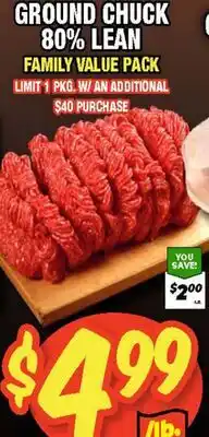 The GROUND CHUCK 80% LEAN is available this week in the weekly ad of Western Beef, with an attractive discount. On this page, you’ll find all the information about current promotional prices, terms of the promotion, and special discounts. Browse through the weekly ad and check out other offers and promotions related to GROUND CHUCK 80% LEAN to ensure you get the best deal.The deal for GROUND CHUCK 80% LEAN is valid in week 08 and can be found in the current weekly ad. Has the deal expired? No worries, you can always check other interesting offers in the weekly ad. You can also follow the product category to be immediately informed when GROUND CHUCK 80% LEAN is back in the weekly ad of Western Beef.