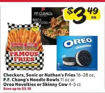 When is Checkers, Sonic or Nathan's Fries, P.F. Chang's Noodle Bowls, Oreo Novelties or Skinny Cow on sale? or "I want to know if Checkers, Sonic or Nathan's Fries, P.F. Chang's Noodle Bowls, Oreo Novelties or Skinny Cow will be discounted next week?" These are very common questions. Many people make a (shopping) list, with products that they are looking to buy next week. That’s why we always post next week’s flyers first. So you know exactly whether you need to wait a while before making a purchase or when to get it at the cheapest price. Keep an eye on our website to see if next week’s flyer has a deal on Checkers, Sonic or Nathan's Fries, P.F. Chang's Noodle Bowls, Oreo Novelties or Skinny Cow.Will there be a promotion Checkers, Sonic or Nathan's Fries, P.F. Chang's Noodle Bowls, Oreo Novelties or Skinny Cow next week?