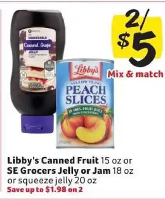 Libby's Canned Fruit or SE Grocers Jelly or Jam