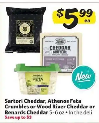 Sartori Cheddar, Athenos Feta Crumbles, Wood River Cheddar, Renards Cheddar Discount at Winn Dixie
