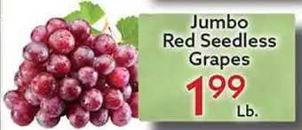 This offer is available in various stores, view all products to get the cheapest Jumbo Red Seedless Grapes. If you'd like to find out whether this product has a bigger discount in another store, check the category 'Grocery'. You may also find these offers interesting: Red Seedless Grapes, RED SEEDLESS GRAPES & Red Seedless Grapes.